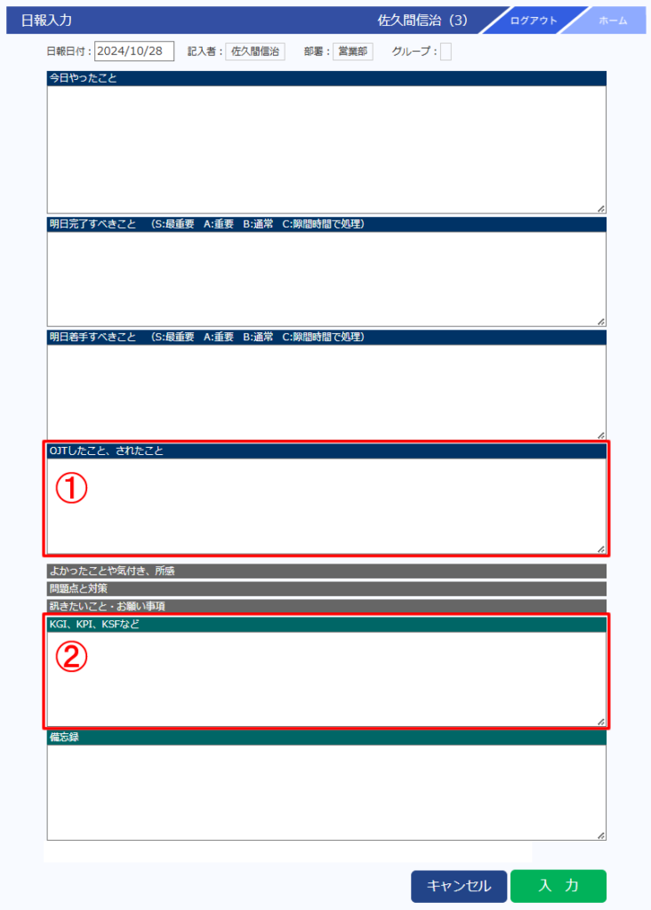 【PC】日報の項目(OJT,KGI)が追加されました