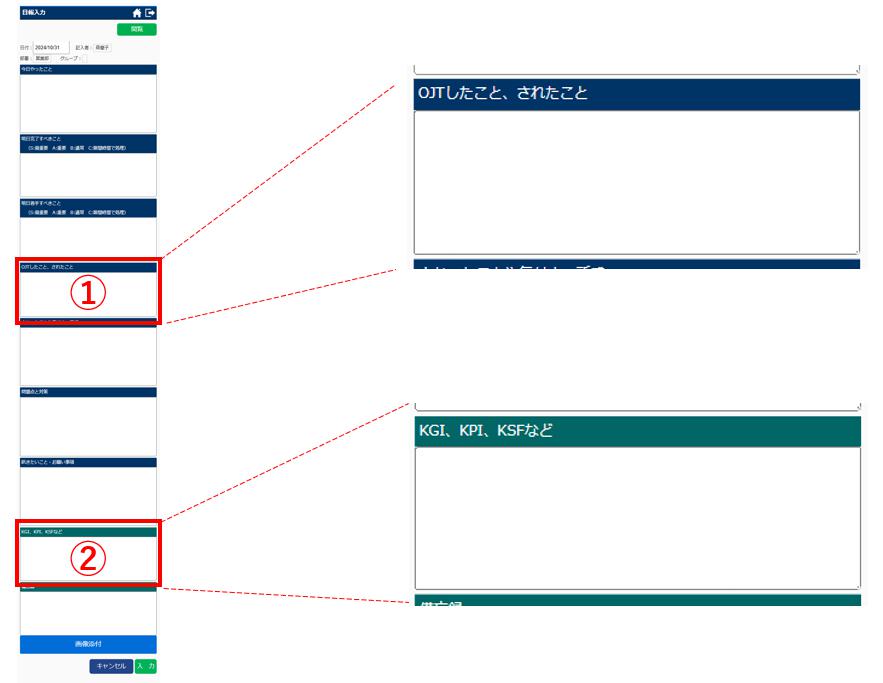 ②は、備忘録と同様に、前日(先回)入力されたものが初期値として入力されています。